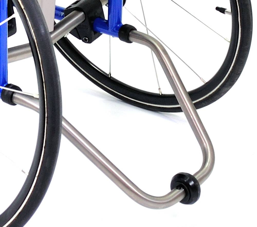 Zabezpieczenie przeciwwywrotne (anti-tip) dla wózka Panthera Micro 3, zapewnia dodatkową stabilność i bezpieczeństwo, szczególnie podczas transferu lub jazdy po nierównym terenie. Montowane z tyłu wózka, chroni przed przypadkowym przechyleniem do tyłu.