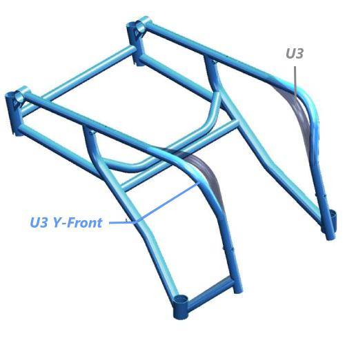 Model Panthera U3 Y-front zapewnia pełną szerokość ramy na wysokości ud użytkownika, a następnie zwęża się ku przodowi, kończąc na stałej płycie podnóżka, gdzie stopy spoczywają razem.