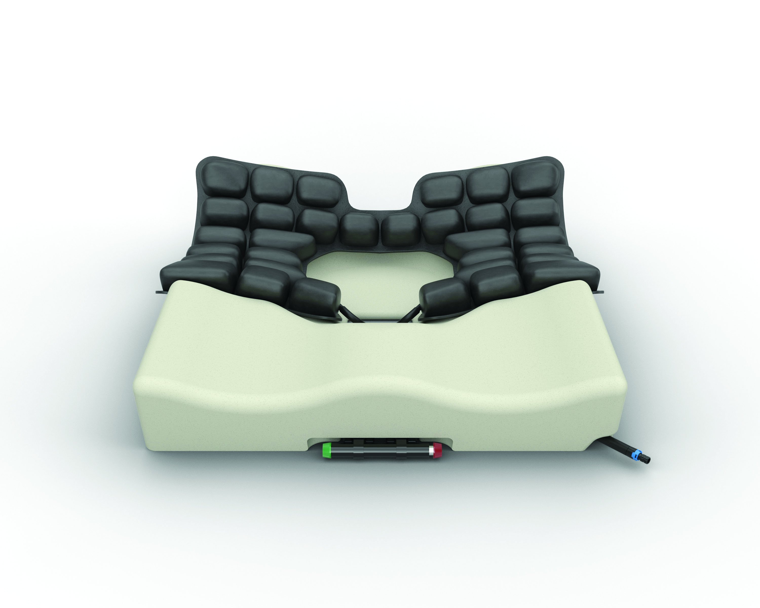 Nowa konstrukcja poduszki daje niespotykane dotąd możliwości ustawienia i stabilizacji miednicy, zaś neoprenowa wkładka ROHO® gwarantuje równomierne rozłożenie nacisku na ciało pacjenta, zapewniając maksymalną ochronę skóry, zwłaszcza w okolicy krętarzy i guzów kulszowych. Wystarczy jedynie wyregulować wkładkę ROHO® do kształtu ciała użytkownika, aby zminimalizować ucisk na tkanki i zapewnić ich prawidłowe ukrwienie.