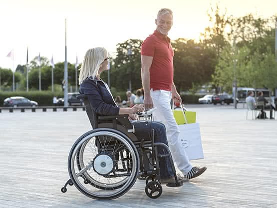 Zamień swój ręczny wózek inwalidzki w kompaktowy elektryczny wózek inwalidzki z napędem e-fix. Napęd można indywidualnie zaprogramować i dlatego można go idealnie dostosować do osobistych potrzeb. Napęd elektryczny to prosty sposób na zwiększenie swobody ruchu. E-fix pozwala również na pokonywanie większych odległości i bezproblemowo pokonuje pochyłości.