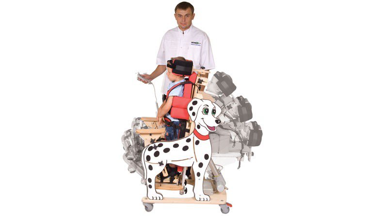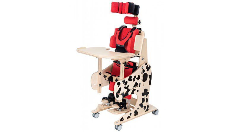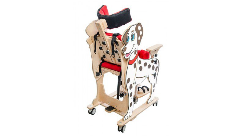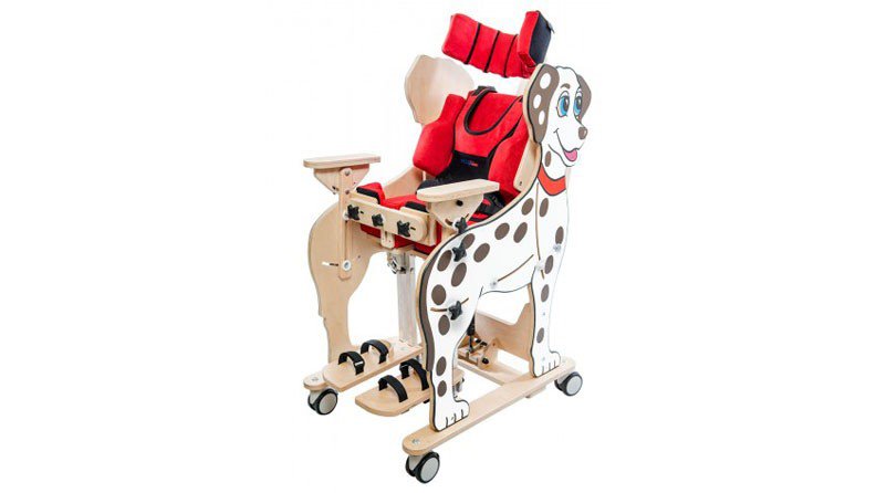 Wielofunkcyjne urządzenie DALMATYŃCZYK ma szerokie zastosowanie w długotrwałej rehabilitacji. Polecane zarówno dla dzieci, jak i młodzieży. Dalmatyńczyk pełni rolę fotelika rehabilitacyjnego, do wstępnej adaptacji pacjentów w pozycji siedzącej, pionizatora statycznego, w dalszym procesie rehabilitacji, a także leżanki wykorzystywanej na każdym etapie usprawniania. Dzięki sprężynie pneumatycznej terapeuci lub opiekunowie mogą pionizować dziecko nie wyjmując go z urządzenia. Poprzez swoją wielofunkcyjność, bogatą regulację i wyposażenie, w sposób kompleksowy uzupełnia proces rehabilitacji dzieci i młodzieży. Pionizacja może odbywać się od 0 do 90 stopni. Kamizelka bezpieczeństwa i pas biodrowy wyposażone zostały w innowacyjne zapięcia typu „chwyć i pociągnij”©. Umożliwiają one błyskawiczne i dokładne zabezpieczenie dziecka w urządzeniu. Produkt został wykonany z przyjaznych pacjentowi materiałów ekologicznych a proces malowania w całości odbywa się ręcznie.