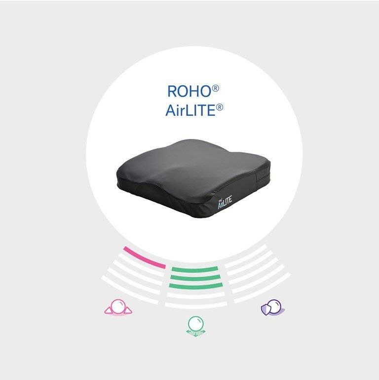 Pozycjonowanie: Profi lowany kształt poduszki AIRLITE®zapewnia użytkownikowi podparcie i pozycjonowanie. Zagłębienia na uda oraz okolice kulszowe umożliwiają kontrolę pozycji siedzenia, gwarantując stabilność i komfort.