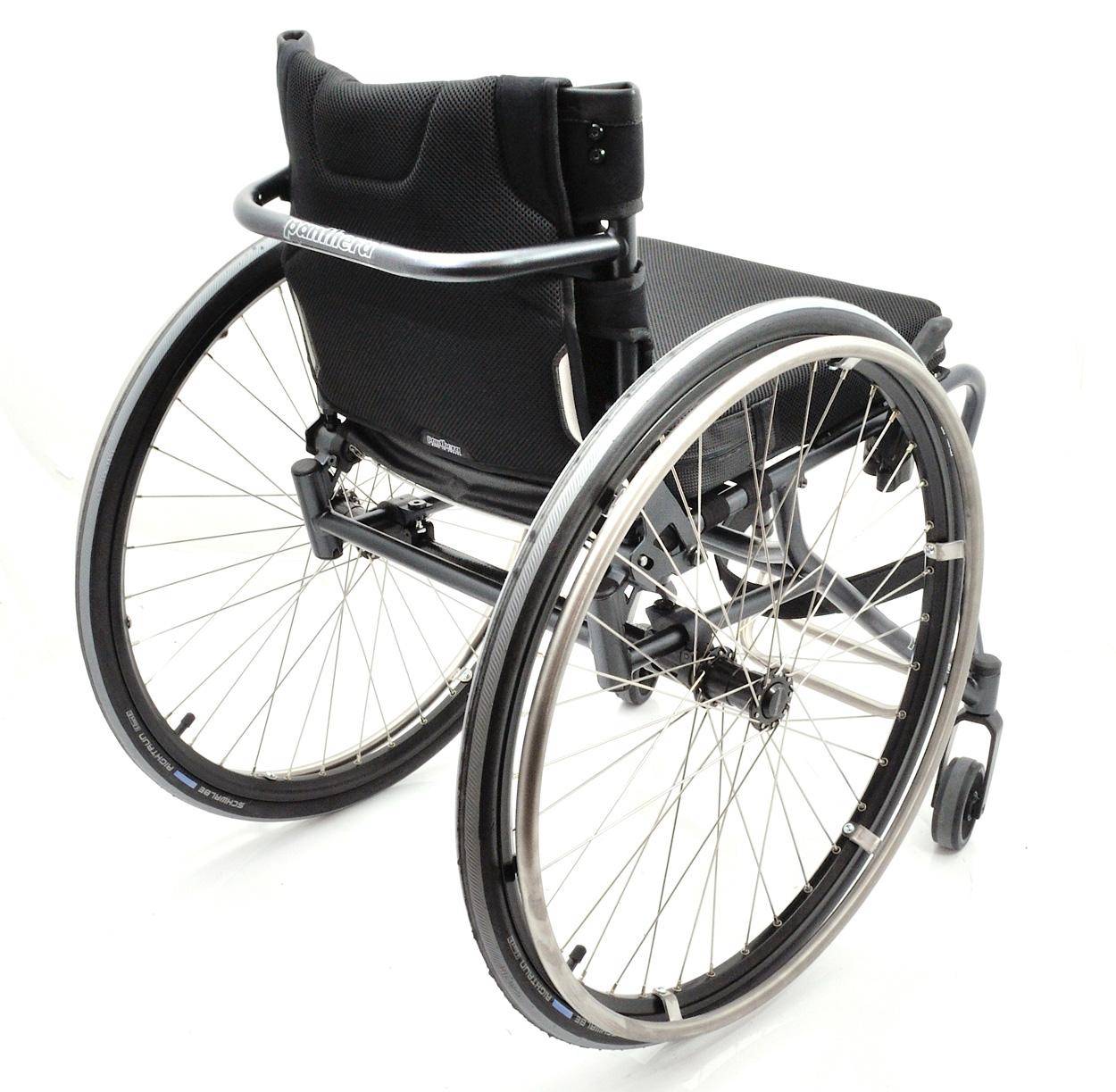 Model Panthera U3 Y-front zapewnia pełną szerokość ramy na wysokości ud użytkownika, a następnie zwęża się ku przodowi, kończąc na stałej płycie podnóżka, gdzie stopy spoczywają razem.